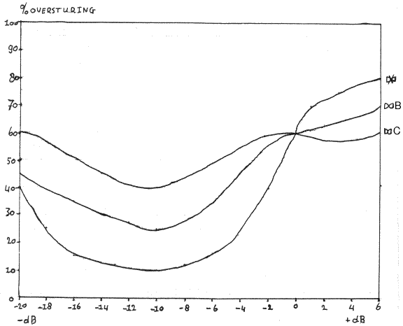 Gemiddelde maximale oversturing bij x dB uitsturing (T=293K)